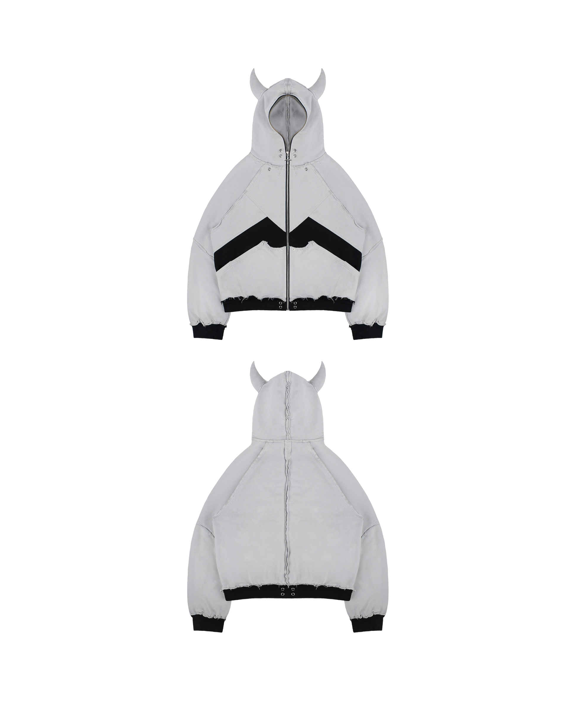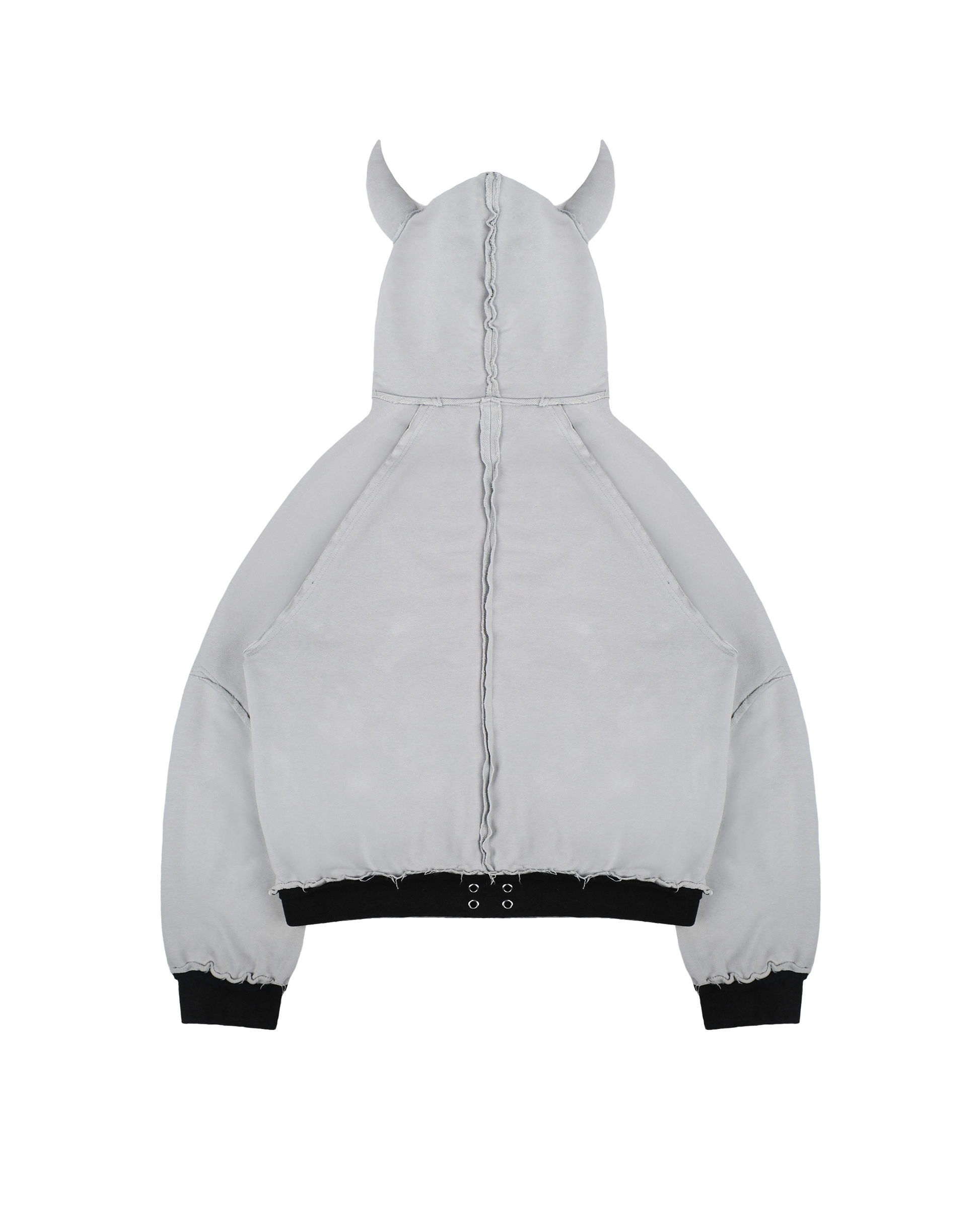 DOOMSDAY 2.0 LIGHTGREY WASHED DEVIL ZIP-HOODIE
