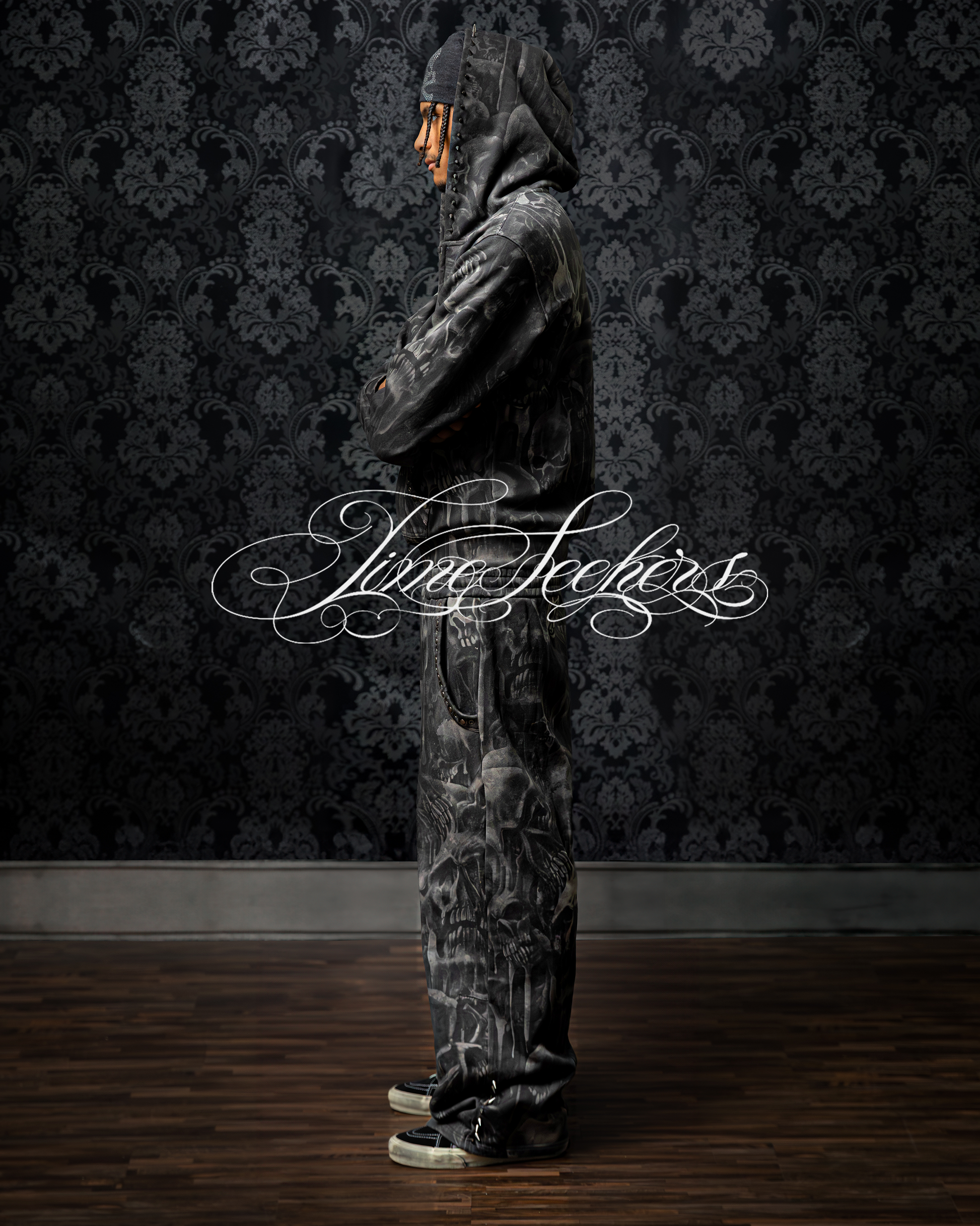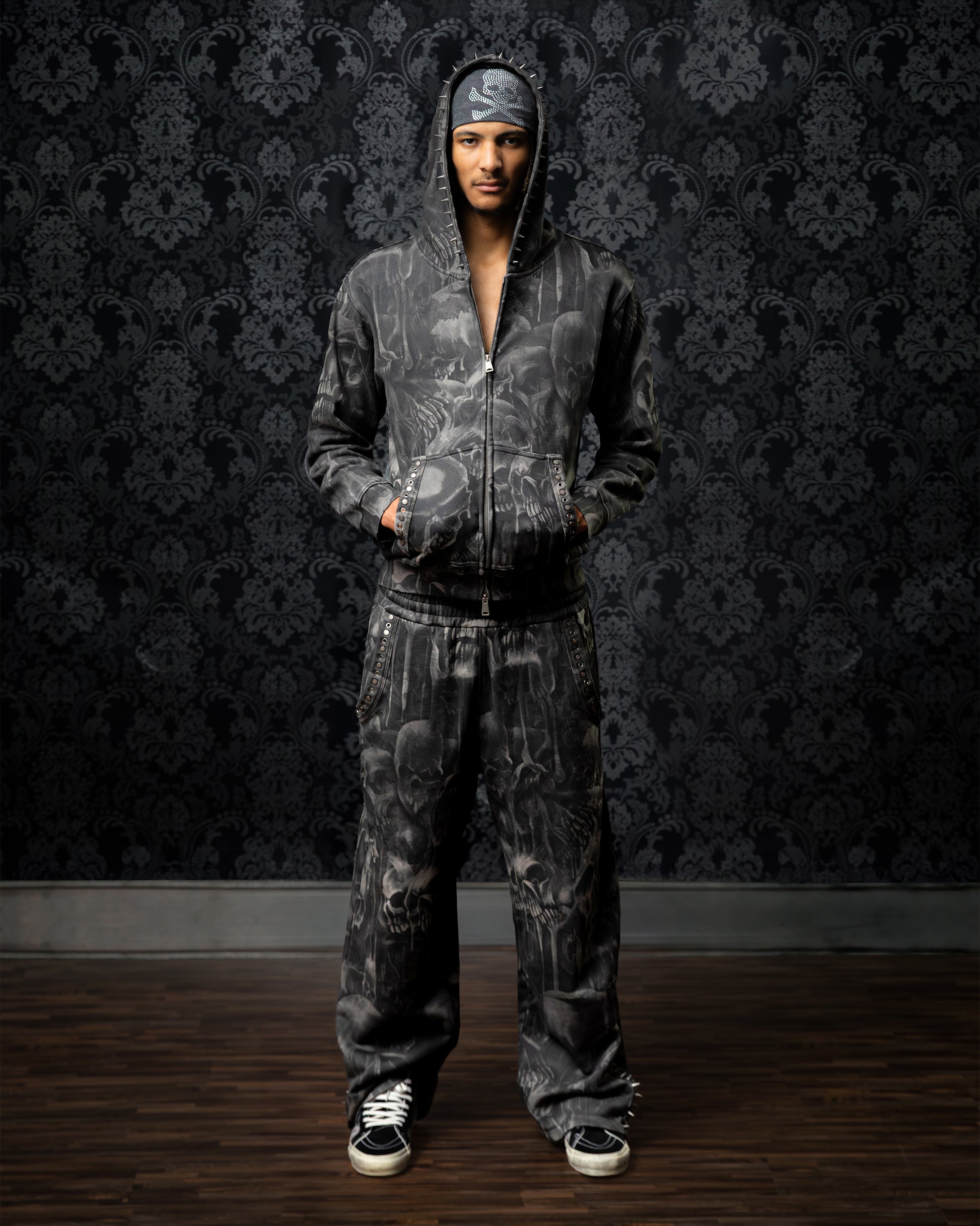 •Faded all-over-skull pattern