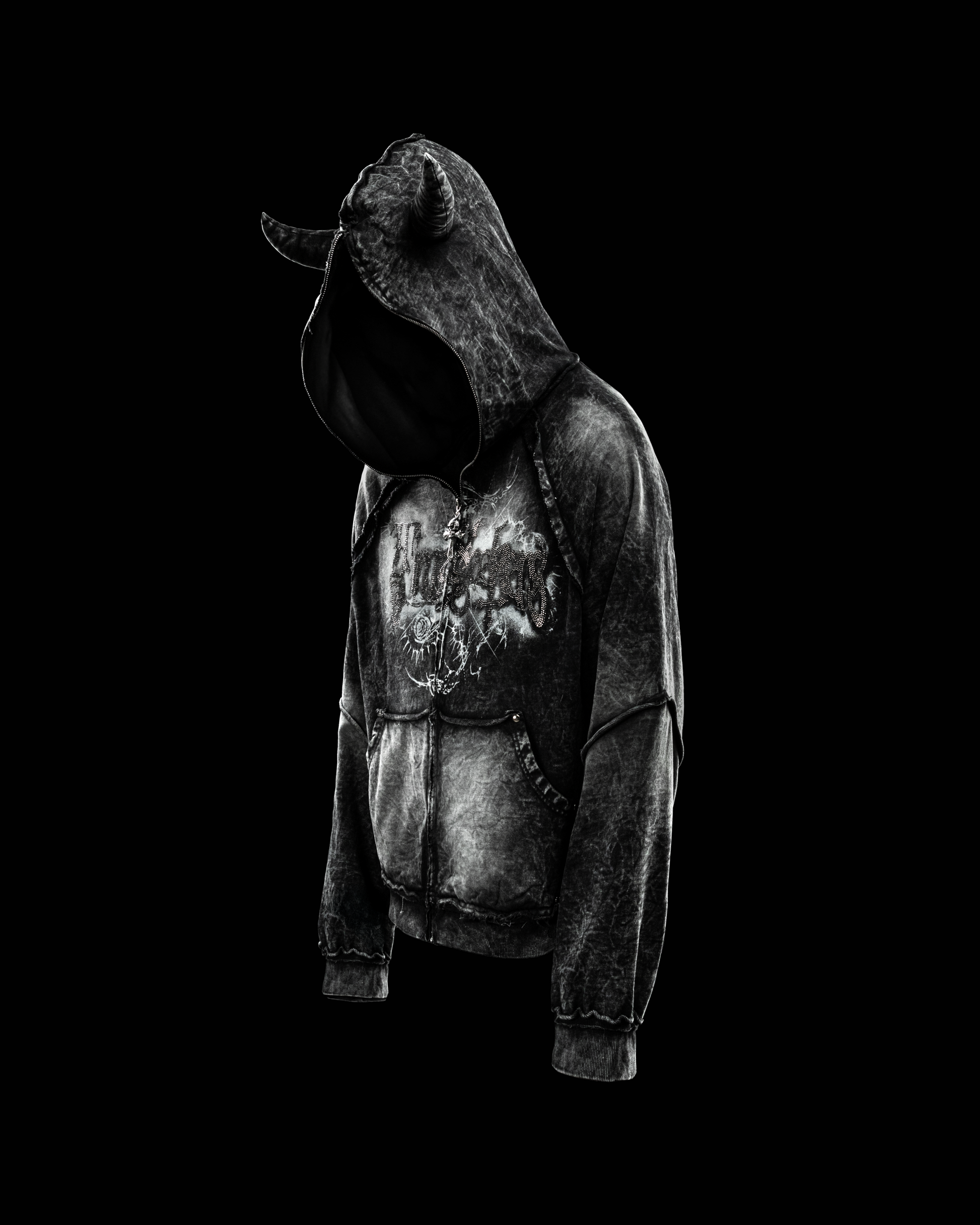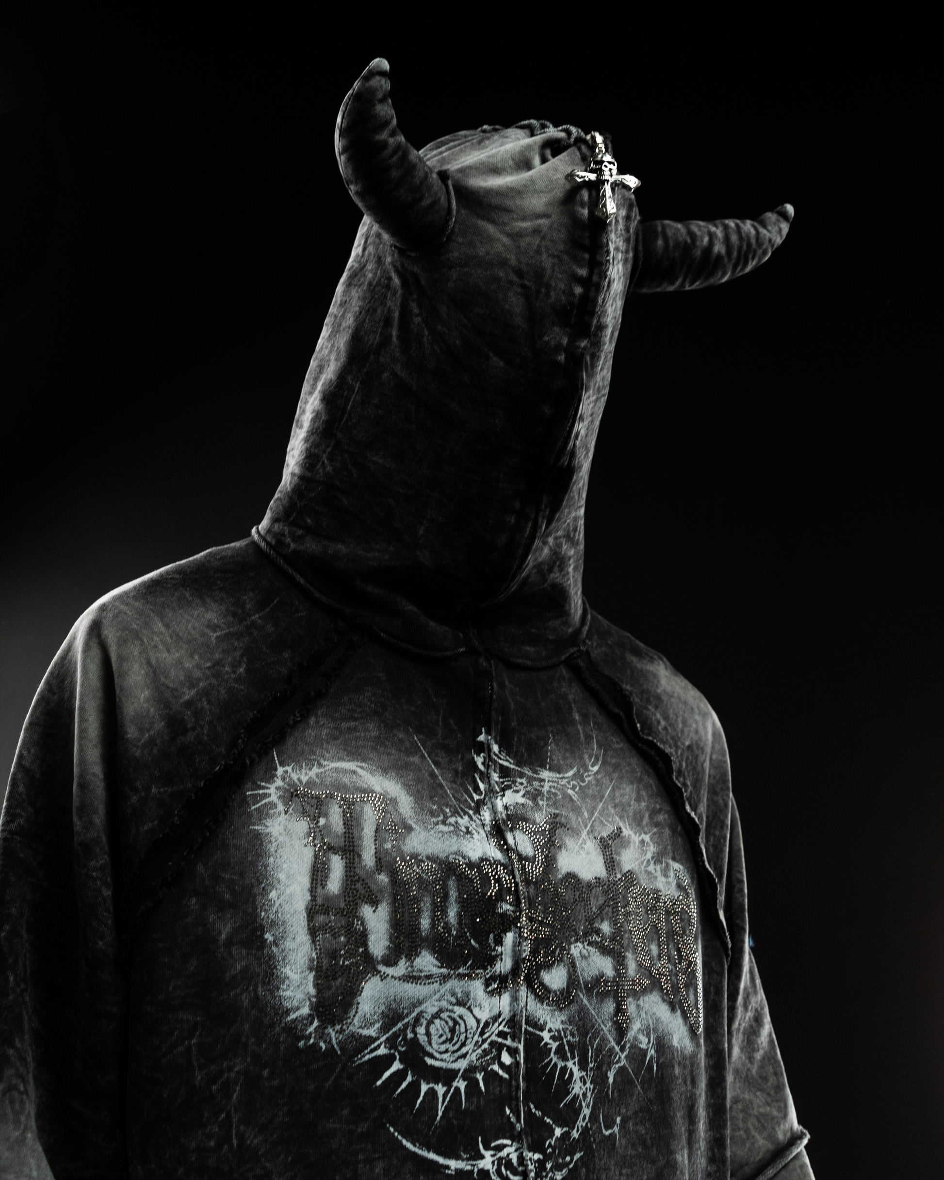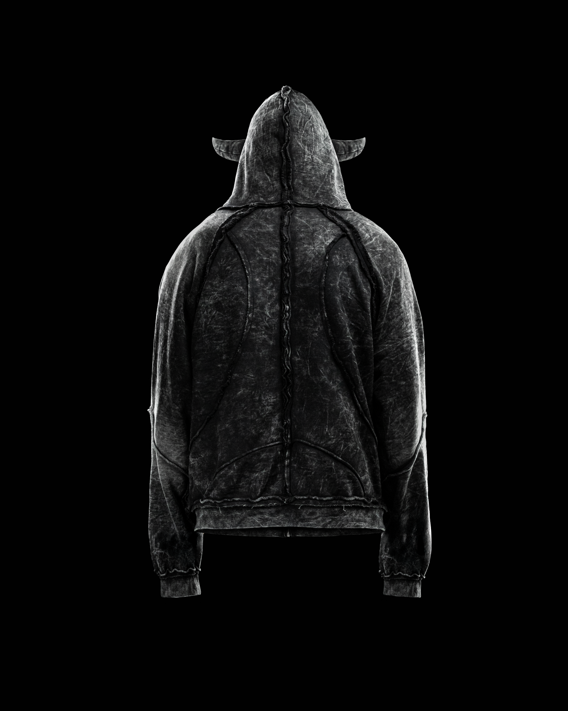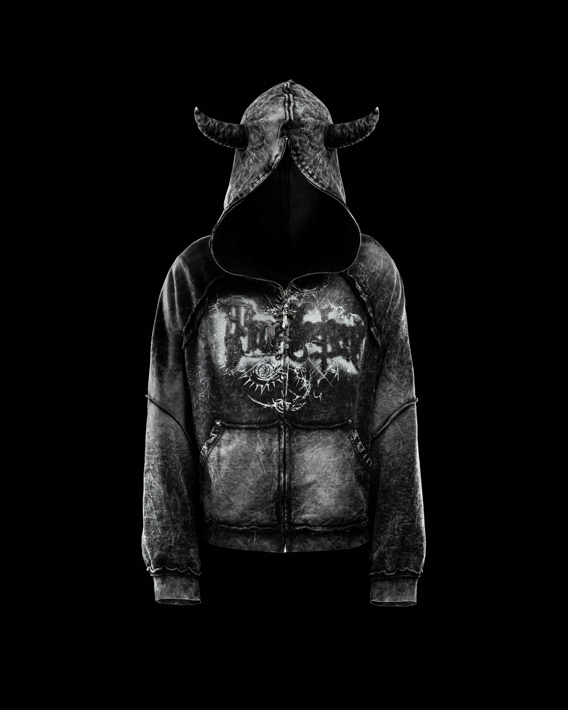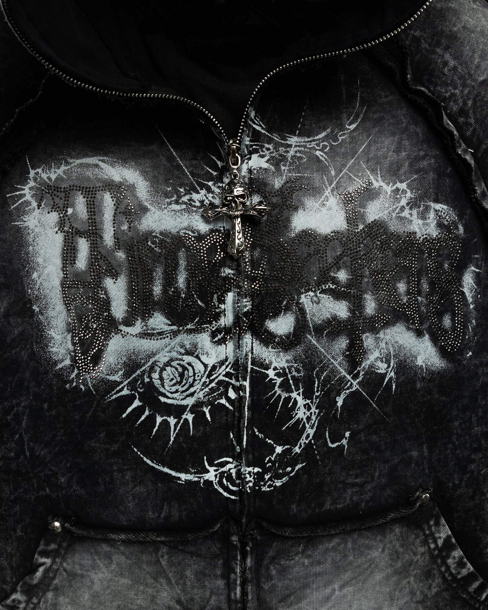 HOTTER THAN HELL 3.0 RHINESTONE ZIP-HOODIE BLACK WASHED