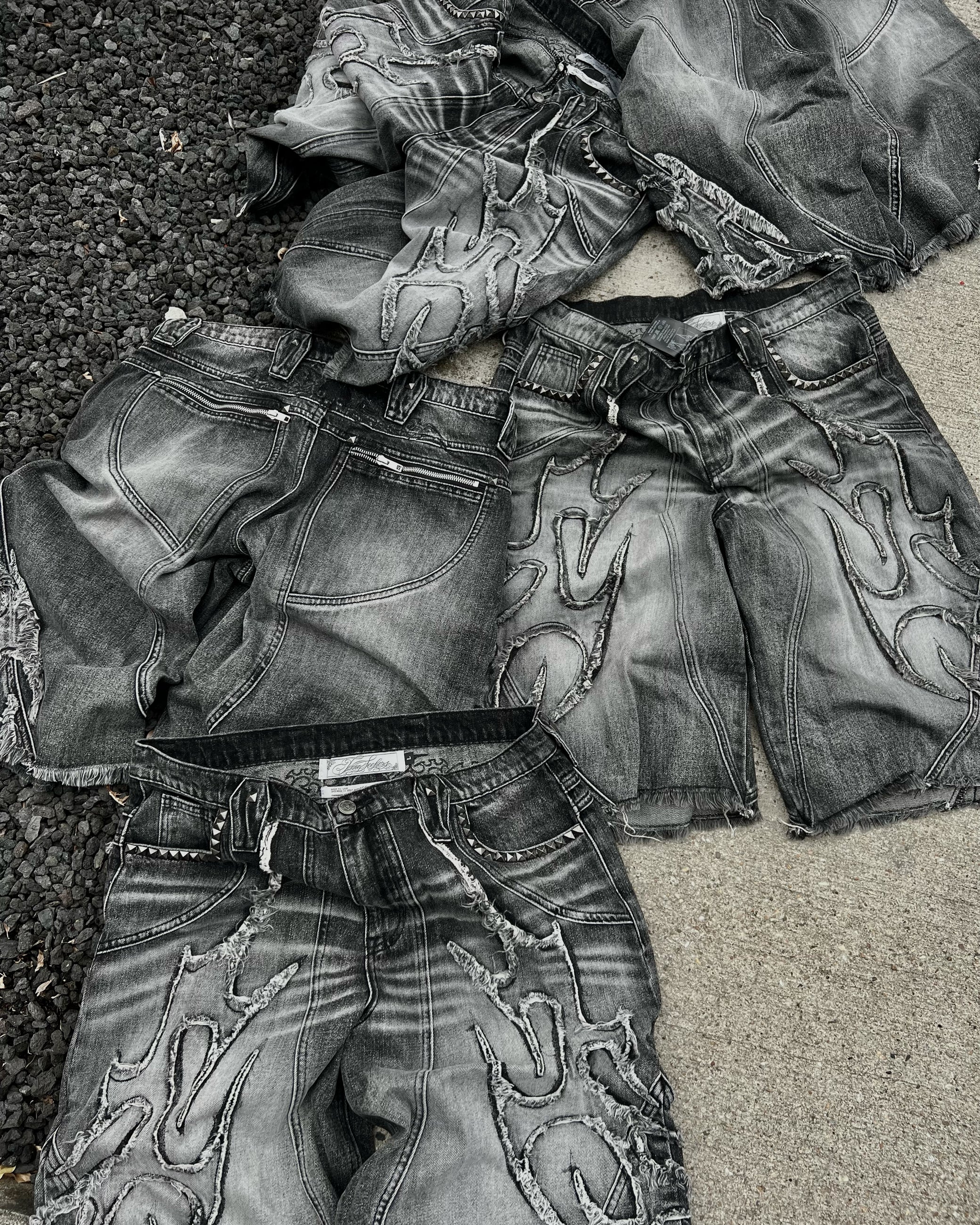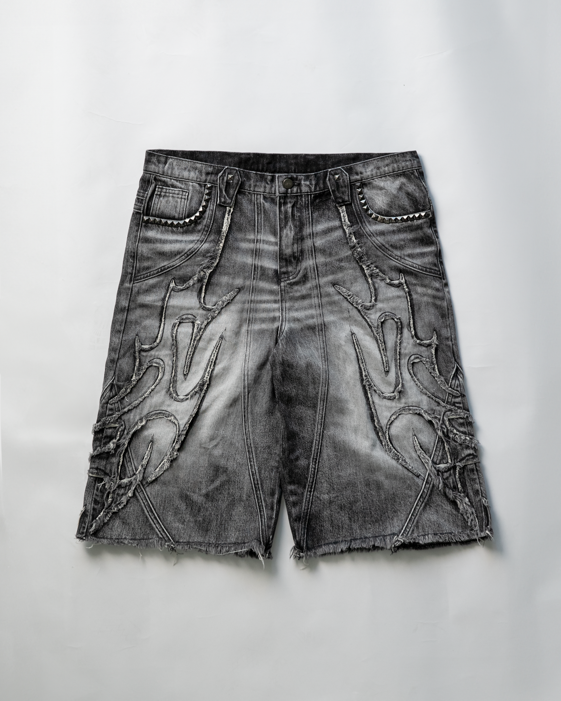 INFERNO WOLF GREY WASHED DENIM SHORTS